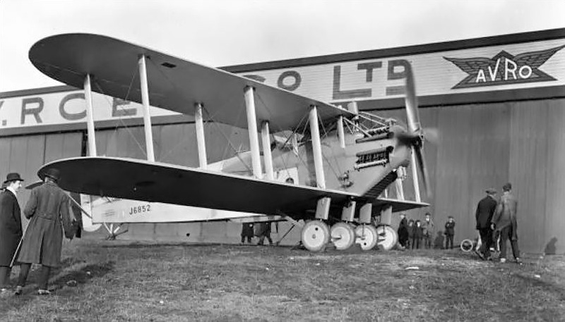 Napier Cub-powered Avro Aldershot II (J6852). This was the first Aldershot prototype, originally powered by a 650 hp Rolls-Royce Condor V-12 engine. To support the Cub, the aircraft had its main gear doubled to four wheels. After three years of Cub-power, the aircraft was re-engined with an 800 hp Beardmore Typhoon (straight-six semi-diesel).