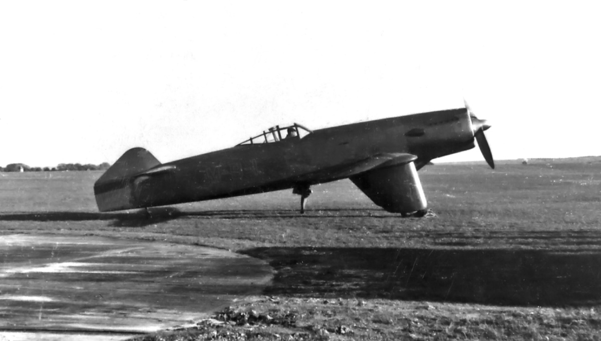 An early photo of the Martin-Baker MB2 when marked as M-B-1, with Capt. Baker at the controls. Note the exhaust manifold and how it differs from the other images.