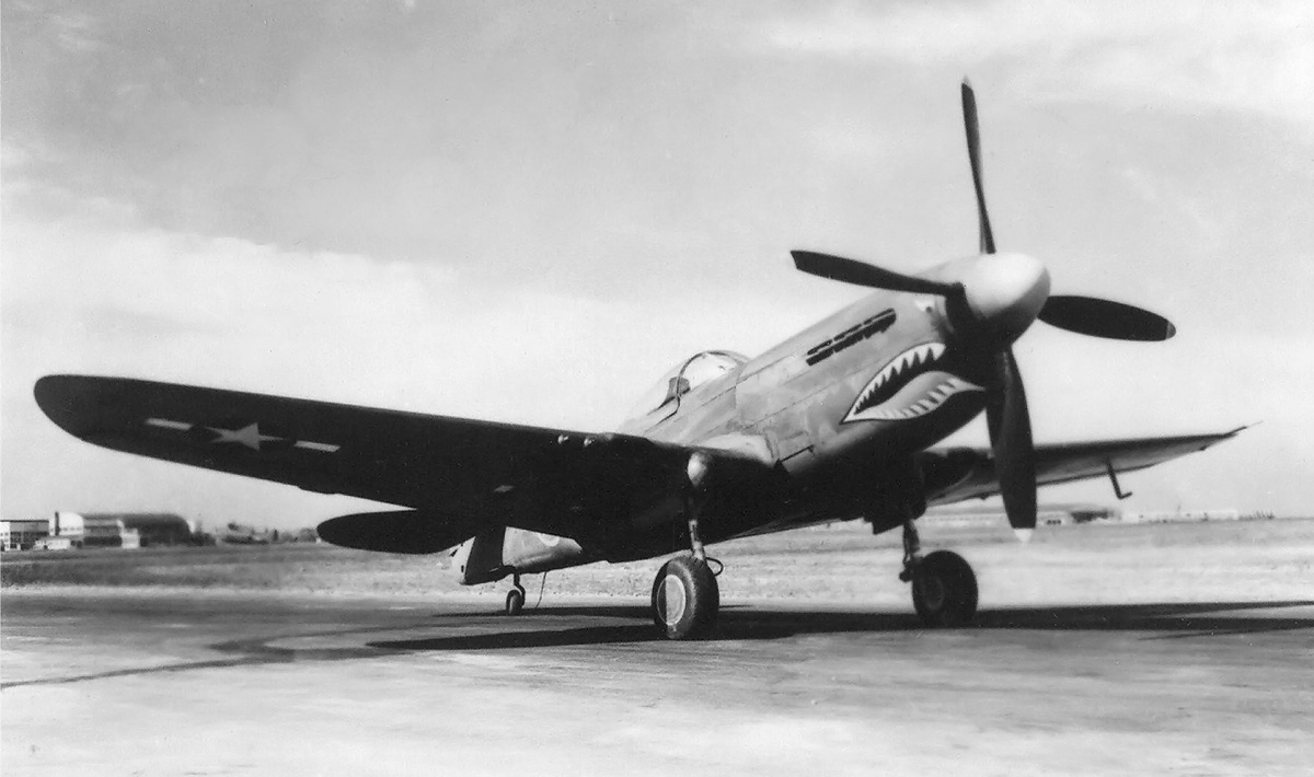 The Curtiss XP-40Q-1 (42-9987) with its standard canopy and sleek nose. Note the scoop for the engine air intake above the cowling.