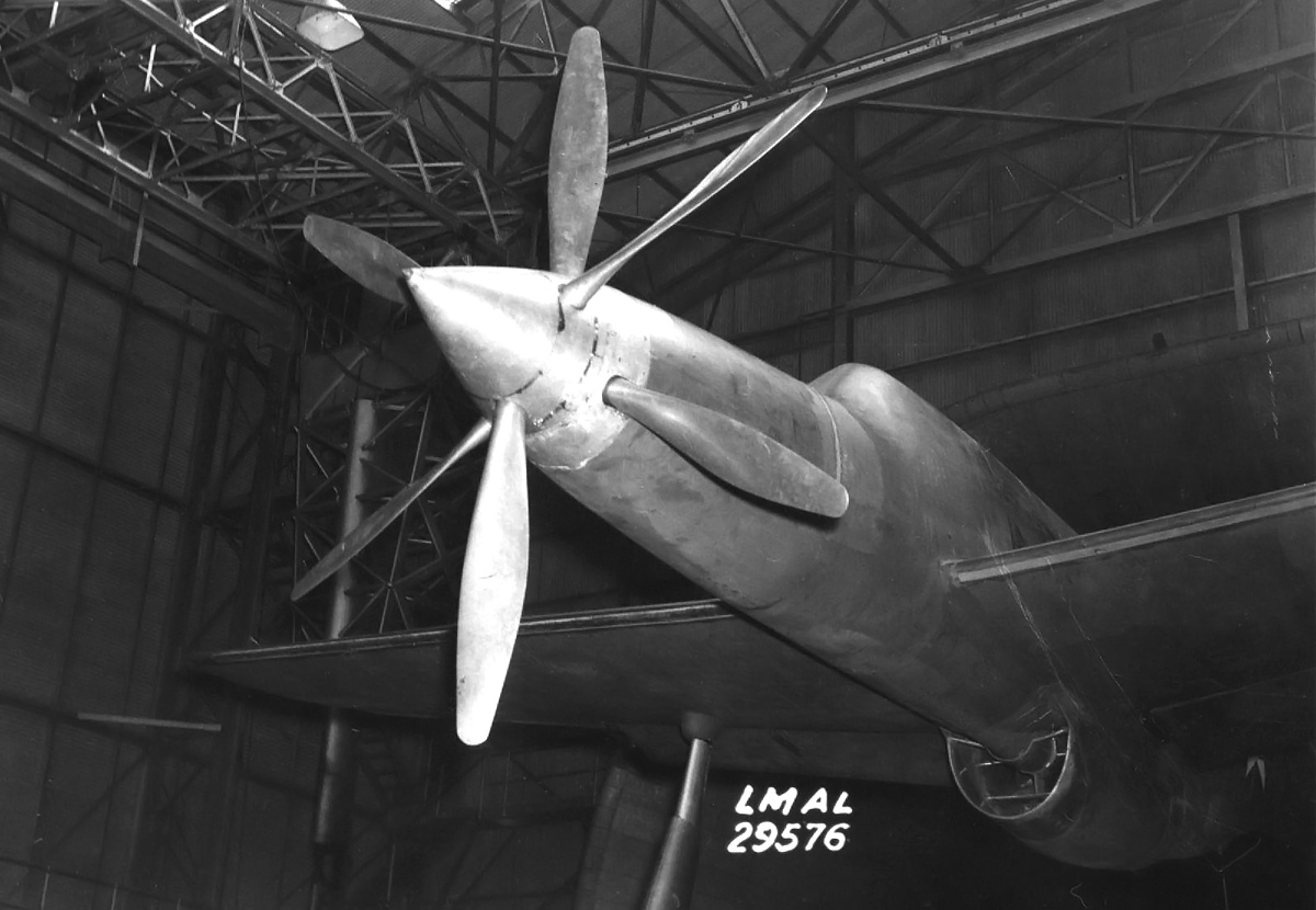 The AP-12 Rocket was Republic’s entry into the R40-C fighter competition. Note the mid-fuselage-mounted Wright R-2160 Tornado engine.