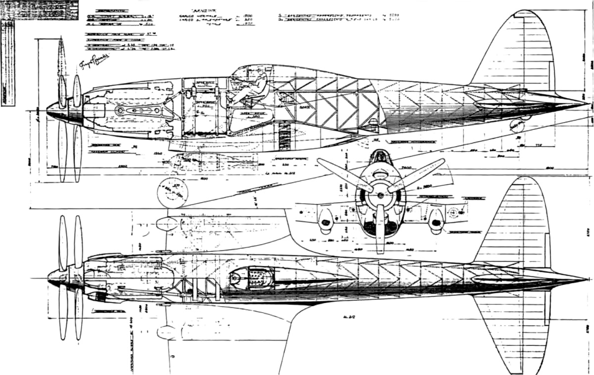 The FIAT G.55 fighter was originally designed to use the A.38 engine with contra-rotating propellers (top), but the aircraft was redesigned once the switch to a single-rotation propeller (bottom) was made. Delays with the A.38 led to the Daimler-Benz DB 605 being installed in the G.55.