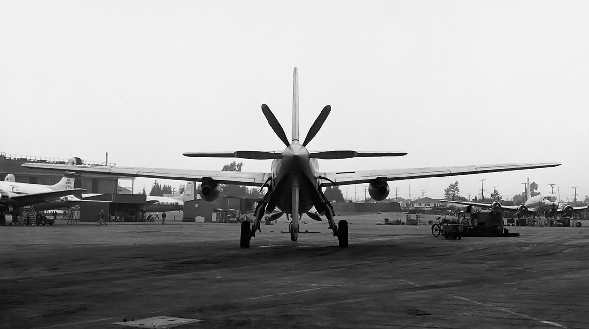 Although visually similar to the XB-42, the Douglas DC-8 Skybus was an entirely new design. The aircraft’s excellent performance and great single-engine handling was not enough to justify its expense over more conventional designs.