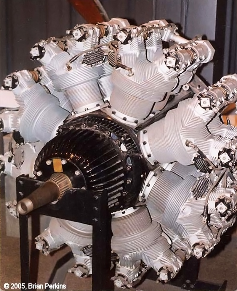 A preserved Bristol Hydra engine held by the Bristol Branch of the Rolls-Royce Heritage Trust. Note the extensive finning on the aluminum cylinders. (Brain Perkins image via the Aircraft Engine Historical Society)