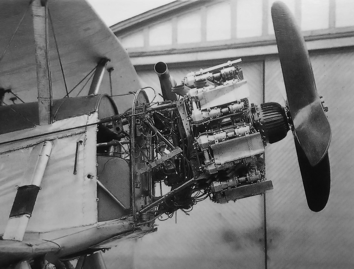 The Hydra V-4 test engine underwent runs in mid-1932 and eventually produced around 190 hp (142 kW) with no cooling issues. A complete 16-cylinder Hydra was first run in 1933. Later that year, the engine was installed in the sole Hawker Harrier biplane bomber prototype, J8325. The engine’s configuration made installation very easy, and the intake Vees were baffled to improve cooling airflow.