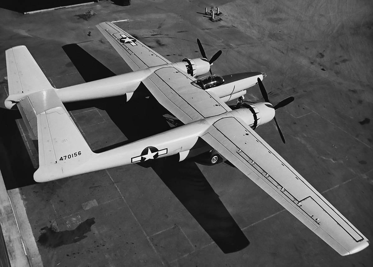 Top view of the second XF-11 illustrates the aircraft’s layout, which was similar to that of a Lockheed P-38. However, the XF-11 was a massive aircraft. Note that the rear of the fixed canopy has been removed. (UNLV Libraries image)