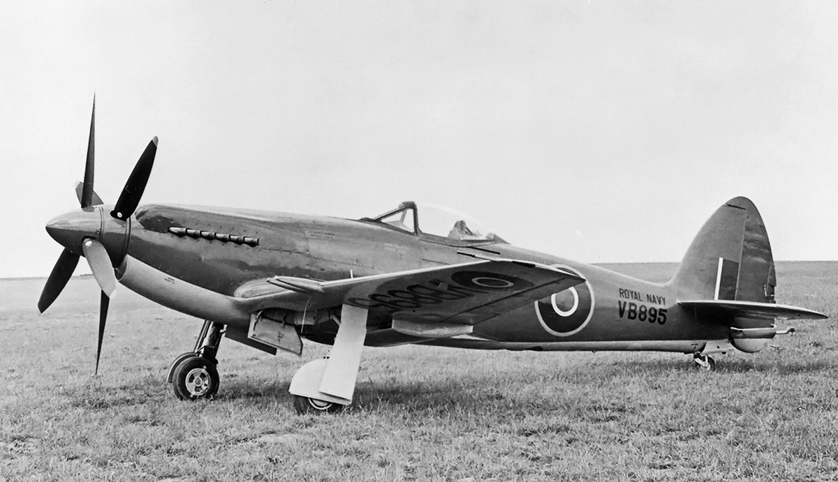 The Seafang F.32 prototype VB895 was the first fully-navalized aircraft of the series. The contra-rotating propellers eliminated the torque effect that led to the downfall of many aviators, especially when operating from the short deck of an aircraft carrier.