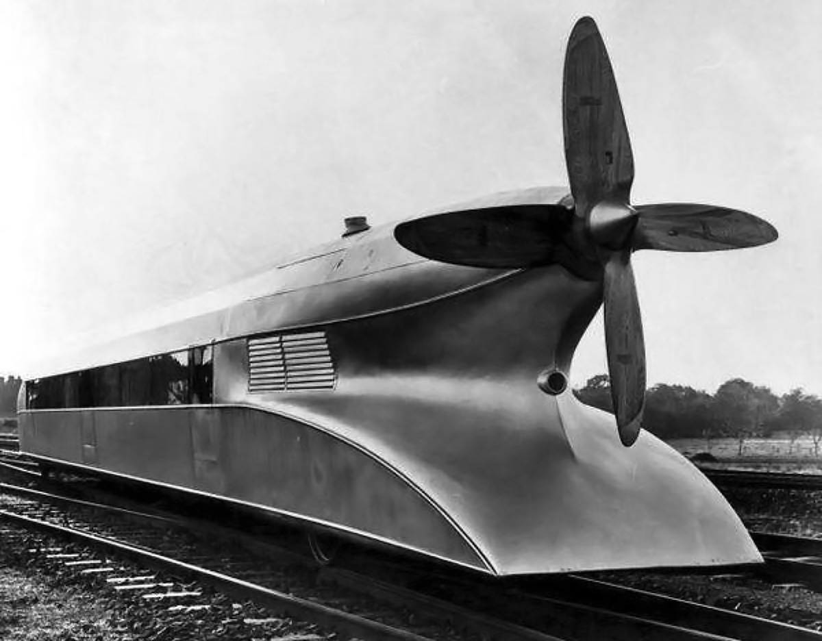 6 thoughts on “Rail Zeppelin Propeller-Driven Railcar (Schienenzeppelin)
