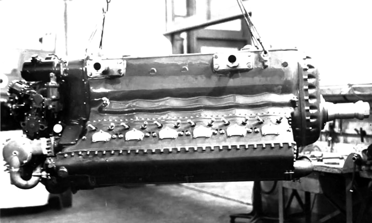 The two intake valves were positioned in tandem on the cylinder’s centerline. One intake valve in each cylinder opened to let supercharged air into the cylinder while the other intake valve opened to bring in the air/fuel mixture from a carburetor. The air intake valve opened 65 degrees before and closed after the air/fuel intake valve. This allowed the supercharged air to scavenge the cylinder and also aid in its cooling.