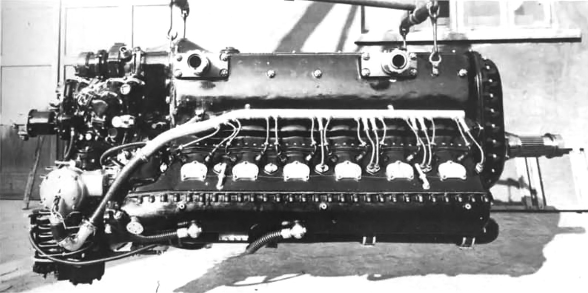 Constructed under the supervision of lead designer Vladimir Klimov, the VK-105 was a liquid-cooled, V-12 engine with provisions for firing a cannon through the propeller hub. With its 5.83 in (148 mm) bore and 6.69 in (170 mm) stroke, the engine had a total displacement of 2,142 cu in (35.1 L). Each cylinder bank had a single overhead camshaft that actuated the two intake valves and single exhaust valve. The engine’s intake and exhaust ports were located on the outer sides of the engine. The intake manifold for each cylinder bank incorporated three carburetors. The VK-105 had a compression ratio of 7.1 to 1.