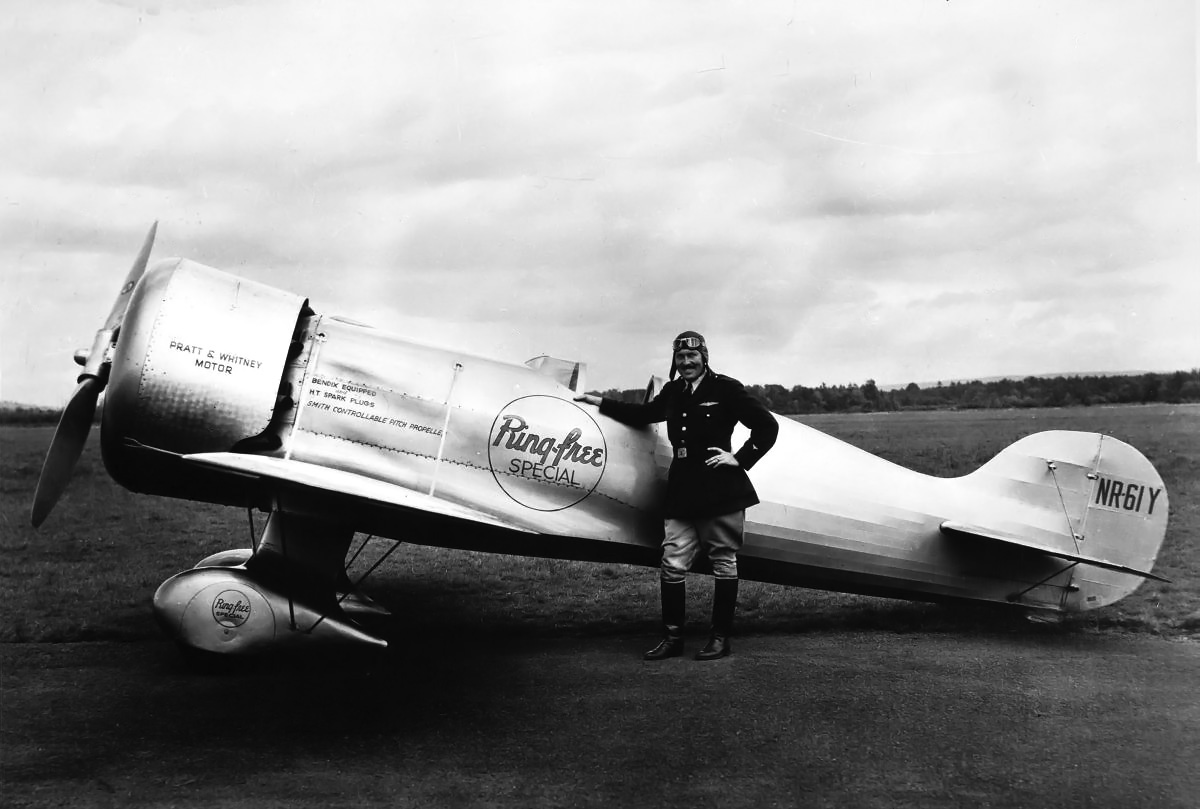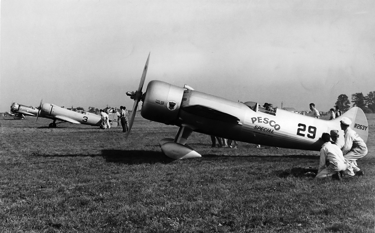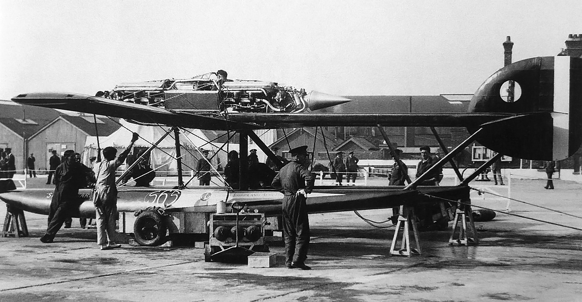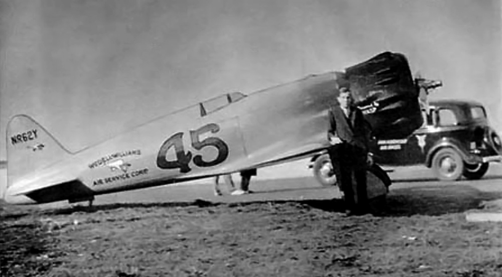 Elevated view of the 28VD illustrates the surface radiators covering the upper wings. Note the vents in the wing’s trailing edge fairing. The race number “5” has been applied to the fuselage. This image was most likely taken on 14 May 1933, the day of the accident, as the aircraft is prepared for its qualification flight.