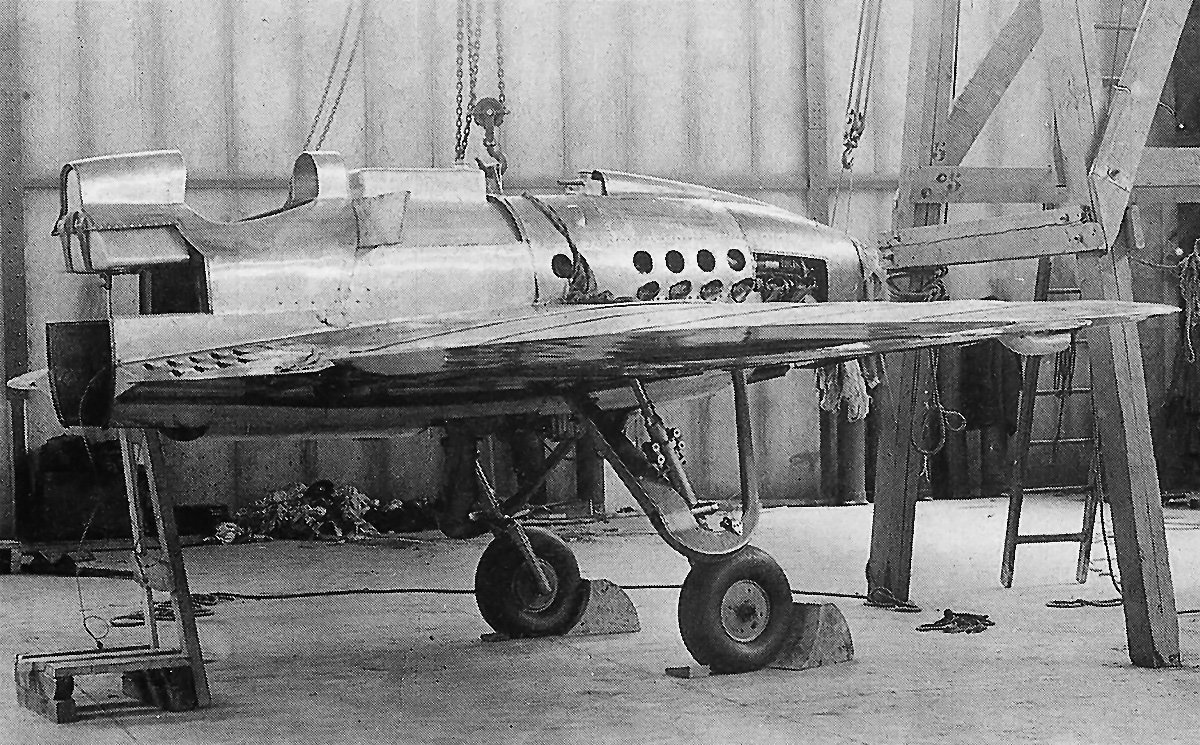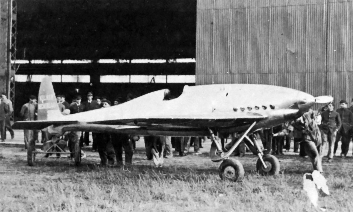 The 28VD undergoing final touches. This image gives a good view of how the surface radiators wrapped around the wing’s leading edge. Note the large Ratier metal propeller. Intakes to the engine’s superchargers can just been seen on the cowling’s undersides.