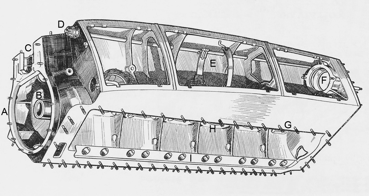The flat-plane crankshaft had four throws and was supported by three main bearings. A master connecting rod was attached to each crankpin. The master rods were connected to the aluminum pistons in the vertical cylinder bank. Articulated rods connected the pistons in the left and right cylinder banks to the master connecting rods. The engine had a compression ratio of 5.2 to 1. The propeller was attached directly to the crankshaft without any gear reduction. The Lorraine 12F had a 4.96 in (126 mm) bore and a 7.09 in (180 mm) stroke. The W-12 engine displaced 1,826 cu in (29.9 L) and produced 500 hp (372 kW) at 1,600 rpm. The 12F weighed 960 lb (435 kg).