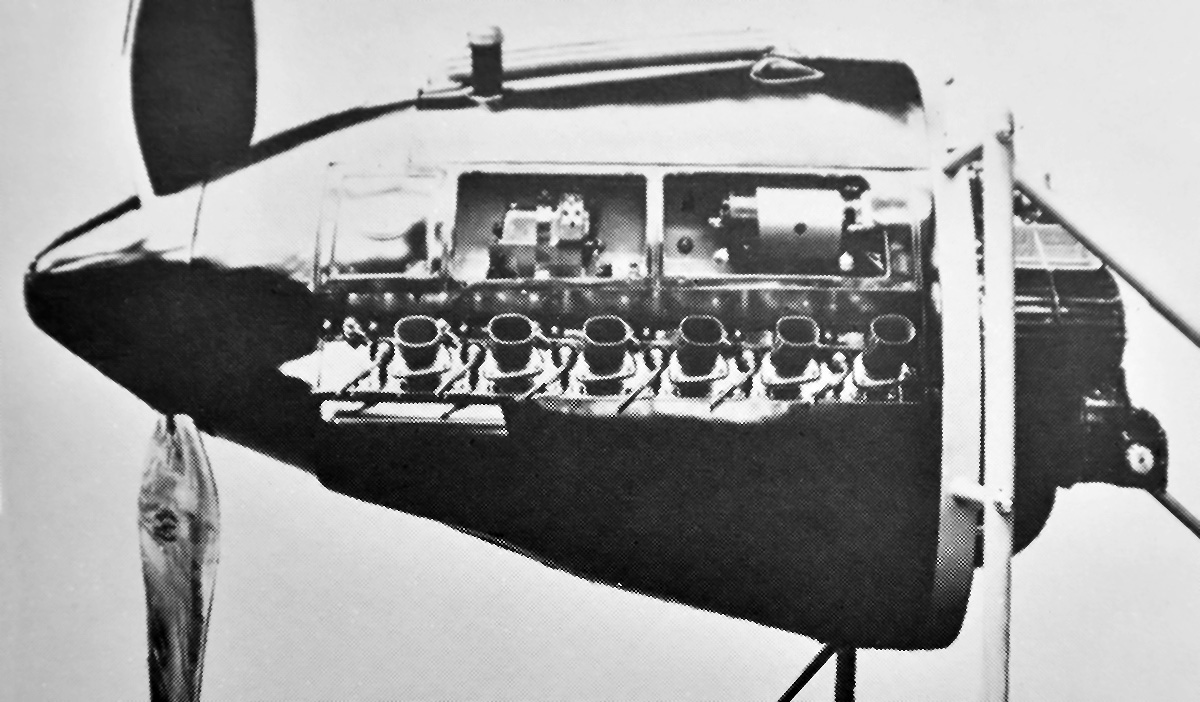While work on the 12F was underway, a 24-cylinder engine was designed that was basically two 12Fs. The W-24 engine was designated 24G (many sources do not give a designation for this engine, and a different G-series emerged later). Other than having twice the number of cylinders, the main change from the 12F was that the ignition system was driven at the front of the engine. The 12G’s eight throw crankshaft was supported by five main bearings. The W-24 engine displaced 3,652 (59.9 L) and produced 1,000 hp (746 kW) at 1,600 rpm. The direct drive engine weighed 1,874 lb (850 kg), and it was estimated that a 16 ft 5 in (5 m) propeller would be needed to harness its power.
