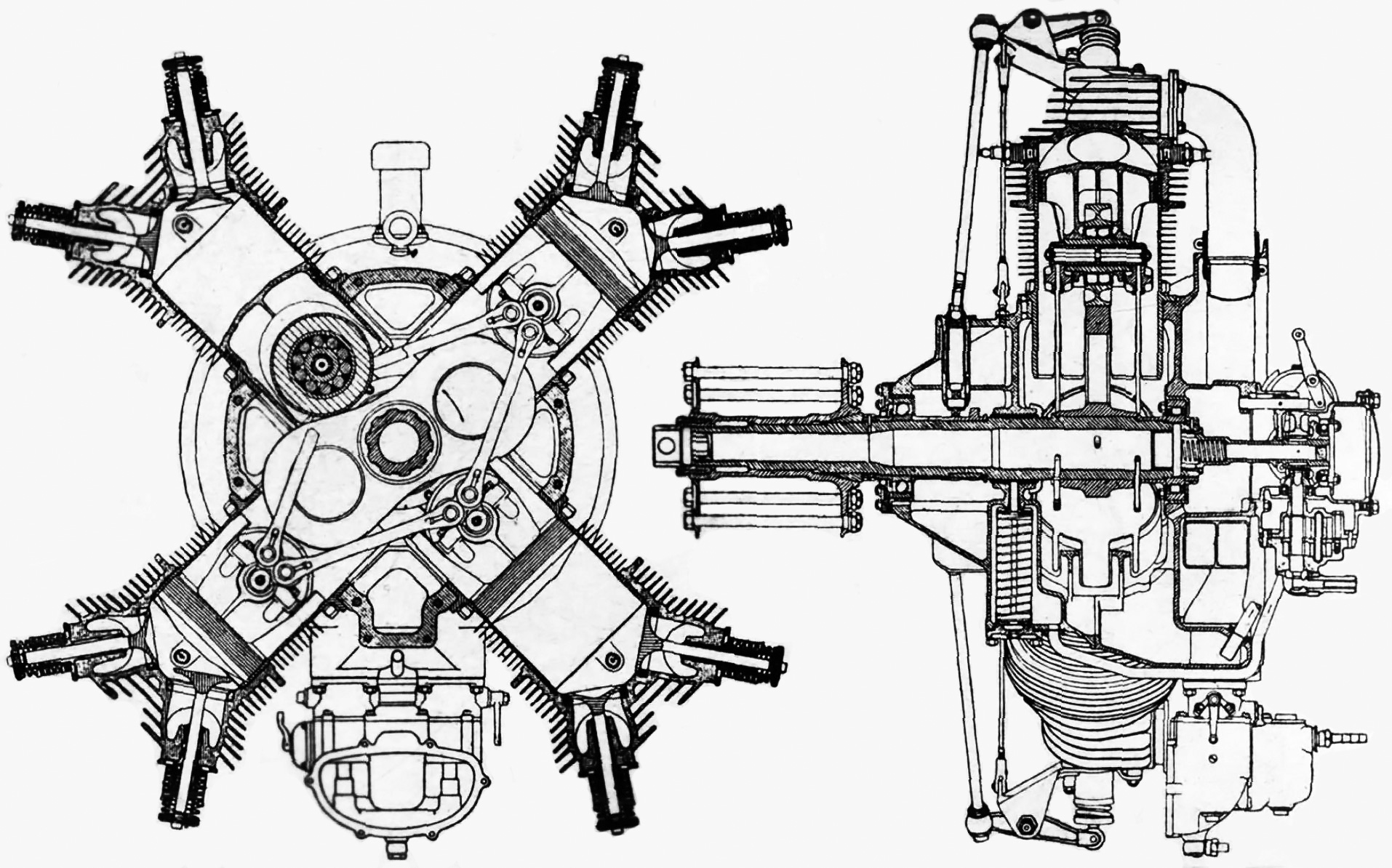 The supercharged 18G Orion that was debuted in November 1934. Note the appearance of the new cylinder banks, which included four valves per cylinder.
