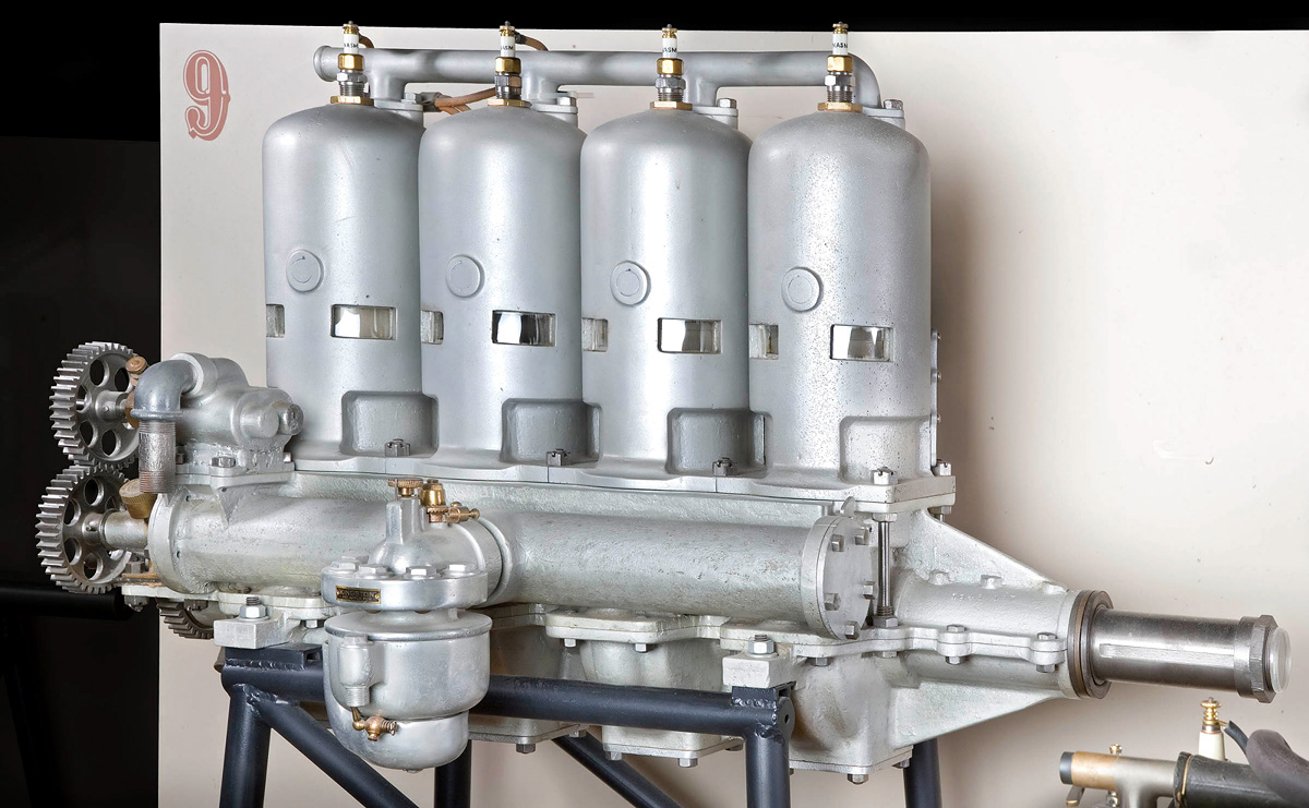The early Antoinette engines used open cylinder barrels made from cast iron. An aluminum cylinder head was bolted to the barrel. Each cylinder had a spun brass water jacket shrink-fitted to the cylinder head. The engine’s spark plugs were fired by a battery-powered ignition coil distributor.