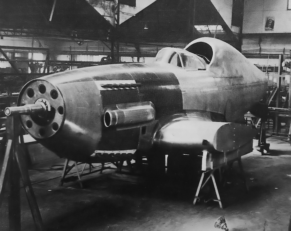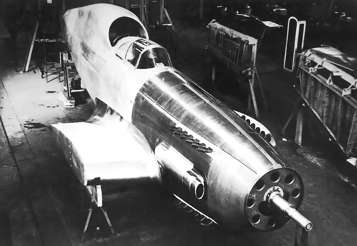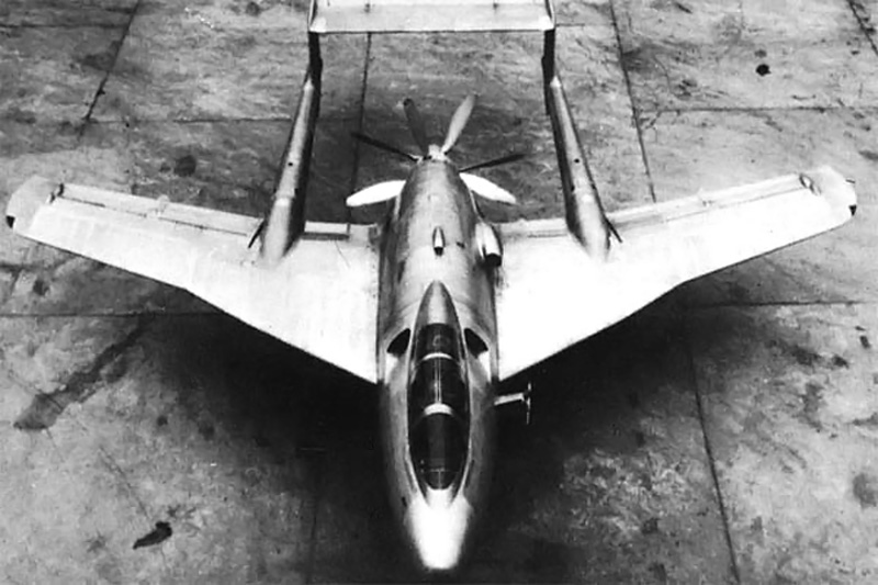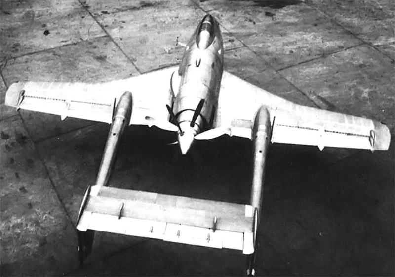 This image shows the S-67’s original tail that did not have any rudders. Note the tail’s camber. Air brakes can be seen on the upper wing surfaces. The main gear had a 7 ft (2.1 m) track.