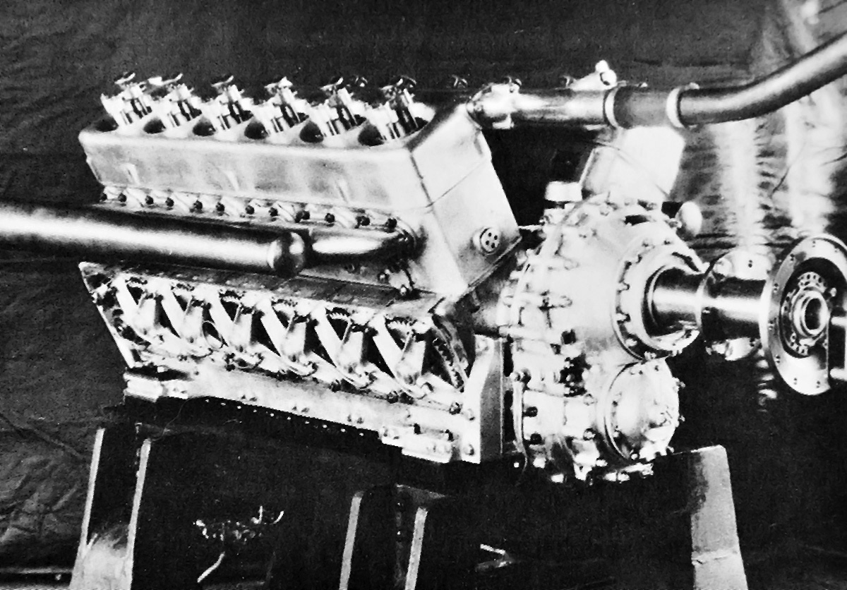 Originally designed in 1917, the Lion was a 12-cylinder aircraft engine with three banks of four cylinders. The center bank extended vertically from the crankcase, with the left and right banks angled at 60 degrees from the center bank. Two supercharged Racing Lion VIID engines were available for Cobb’s LSR car. Built in 1929, the engines had been used by Marion Barbara (Joe) Carstairs to power her Estelle IV motorboat. The Lion VIID was the same type of engine Campbell had used to power his Blue Bird in 1931 and 1932. The modified engines produced 1,480 hp (1,104 kW) at 3,600 rpm during tests, but would only produce 1,250 hp (932 kW) at Bonneville’s 4,200-ft (1,280-m) elevation. Carstairs gave both Lion VIID engines to Cobb. Incidentally, Carstairs had funded Campbell’s purchase of two Lion VIID engines in 1930 for his Blue Bird.