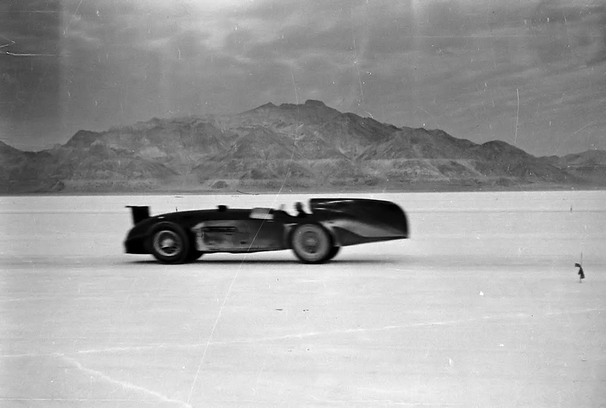 John Cobb and the Railton streak across the Bonneville Salt Flats in 1947. The car was the first to go over 400 mph (644 km/h).