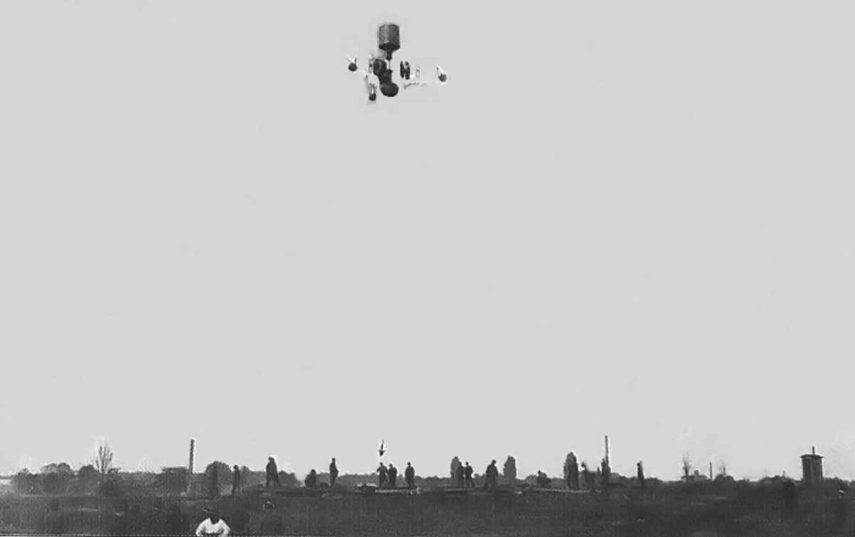 The XH-17 test rig was run for the first time around October 1949. Only bleed air was used to turn the rotors. After about three months of testing, the rotor burners were fired for the first time on 22 December 1949. This created a very a loud whop-whop-whop noise that coincided with the passing of each set of lit burners on the rotors’ tips. The noise was so loud that it could be heard eight miles (13 km) away, and the XH-17 caused numerous noise complaints to be filed against Hughes.