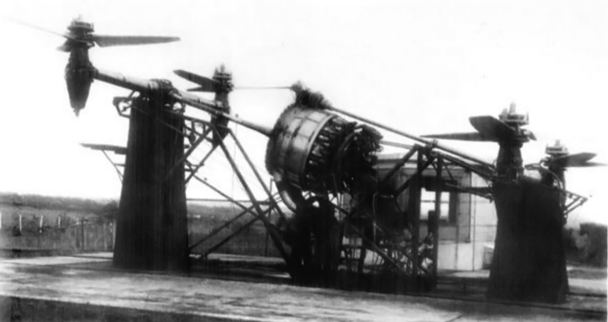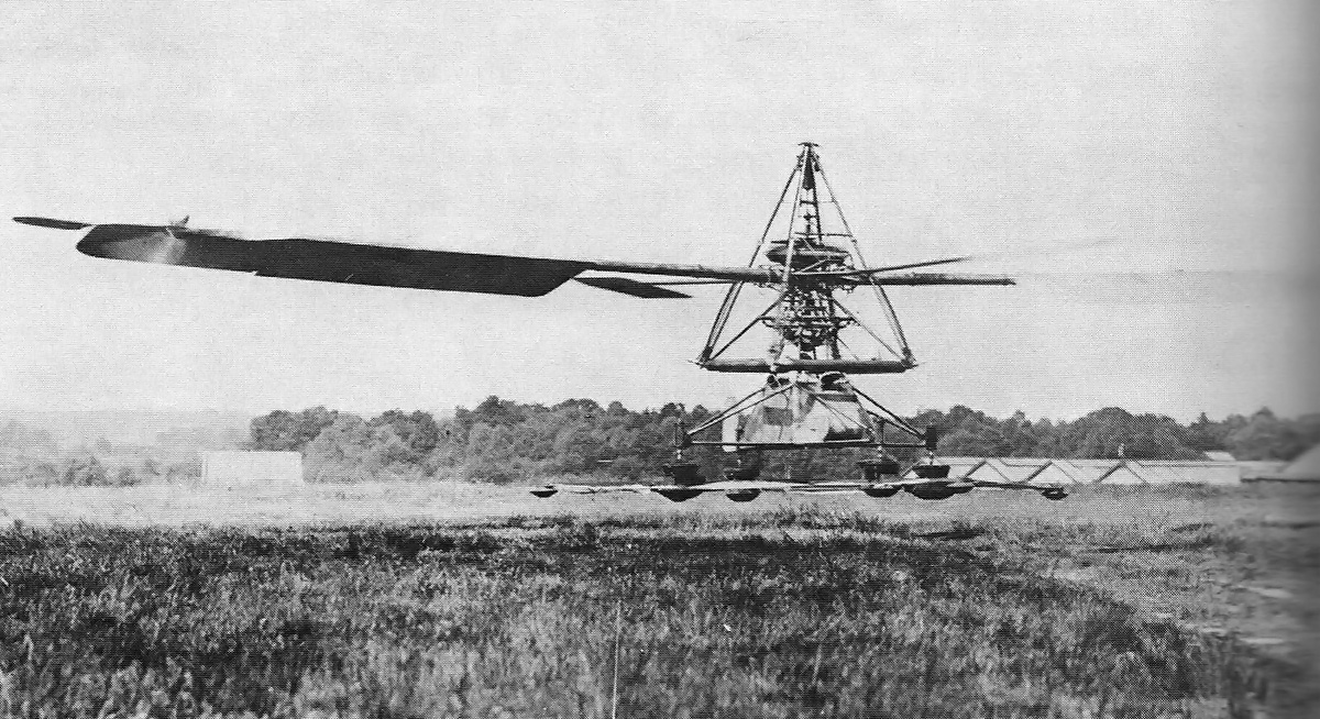 The XH-17 was a rather awkward-looking machine, and it is easy to see why it was referred to as “Monster.” The glowing spots on the rotor blade’s tip are the pressure-jet burners. (LIFE image via Google)