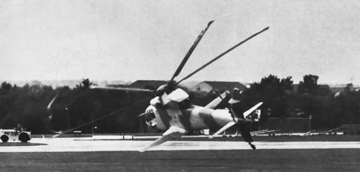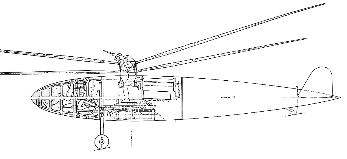 The XH-17 was ready for flight in the summer of 1952. The complete helicopter was 53 ft 4 in (16.55 m) long and 30 ft 2 in (9.17 m) tall. The XH-17 had an estimated top speed of 90 mph (145 km/h) and a range of only 40 miles (64 km), due to the high fuel consumption of the rotor’s pressure-jet burner system. The helicopter had a normal weight of around 41,700 lb (18,915 kg) and a maximum weight with a 10,284 lb (4,665 kg) payload of 52,000 lb (23,587 kg).