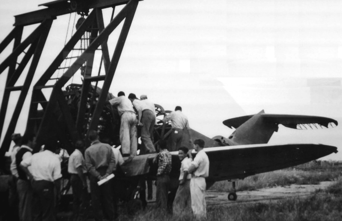 During a test on 16 September 1952, the XH-17 made its first unofficial flight. Piloted by Gale Moore and Chalmer Bowen, the helicopter was accidently bounced off the ground during a hover test due to overly-sensitive controls. The controls were modified, and a much more controlled hover was established the following day. The XH-17 made its public debut on 23 October 1952 at Hughes Airport in Culver City. Two flights were made that day, and the XH-17 hovered, flew forward up to 45 mph (72 km/h), flew backward, and rotated 360 degrees. Moore and Bowen were again the pilots and were joined by Marion Wallace. They had nicknamed the XH-17 “Monster” on account of its odd appearance, but the helicopter was also known as the “Flying Crane.”