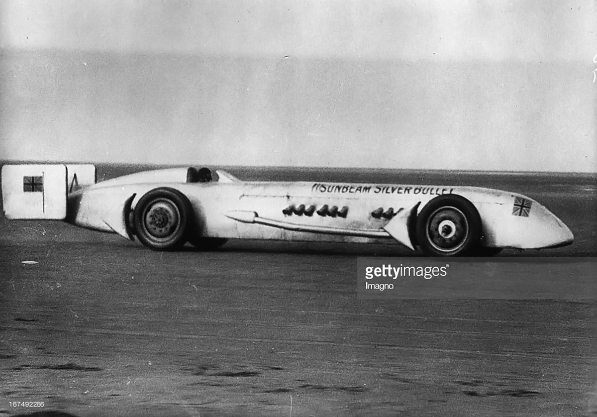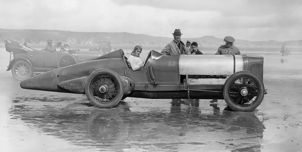 Whatever the ‘fix,’ the modifications to Mephistopheles satisfied the officials, and another record attempt was planned for 12 July 1924. At this point, the time trials were over, and the public road was open to normal traffic. In the early morning, with police standing-by to hold traffic, Eldridge and co-driver D. W. R. Gedge ran the 16-year-old Mephistopheles on the road and established a new LSR at 146.014 mph (234.986 km/h) over the km (.6 mi) and 143.260 mph (234.794 km/h) over the mile (1.6 km). True to its nature, Mephistopheles destroyed its tires along the way. This was the last LSR set on a public road. They also set a standing start 1 km (.6 mi) record at 85.477 mph (137.562 km/h). Eldridge held the LSR until 25 September 1924, when Malcolm Campbell set his first LSR at 146.16 mph (235.22 km/h) over the km (.6 mi) in Guinness’ old Sunbeam 350HP, which became the first Blue Bird.